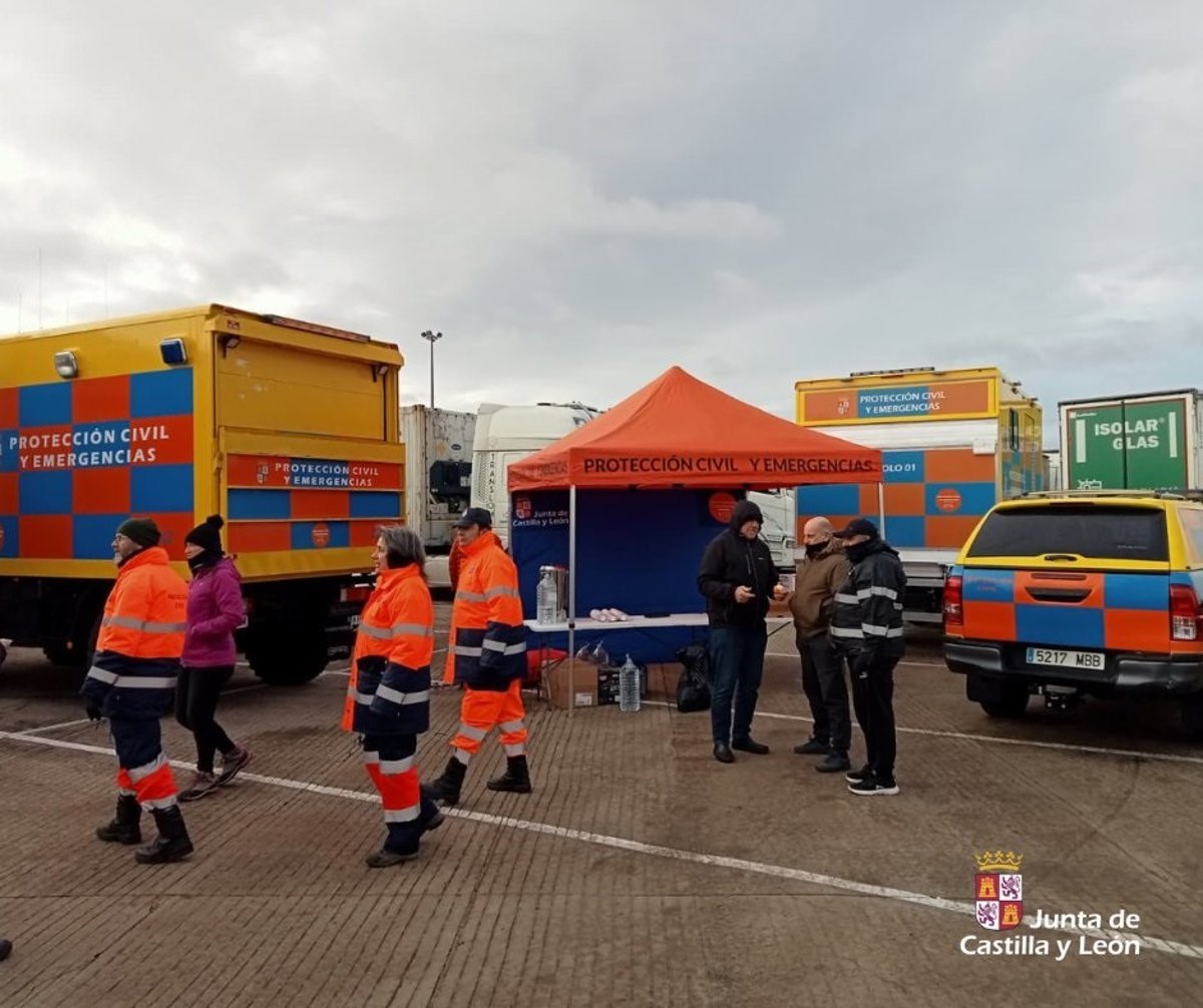 La Agencia de Protección Civil y Emergencias de la Junta movilizó ayer la Unidad de Apoyo Logístico en Emergencias (UALE) en Astorga, que dio cobertura a las personas que se quedaron retenidas por los efectos del temporal, en su mayoría camioneros.