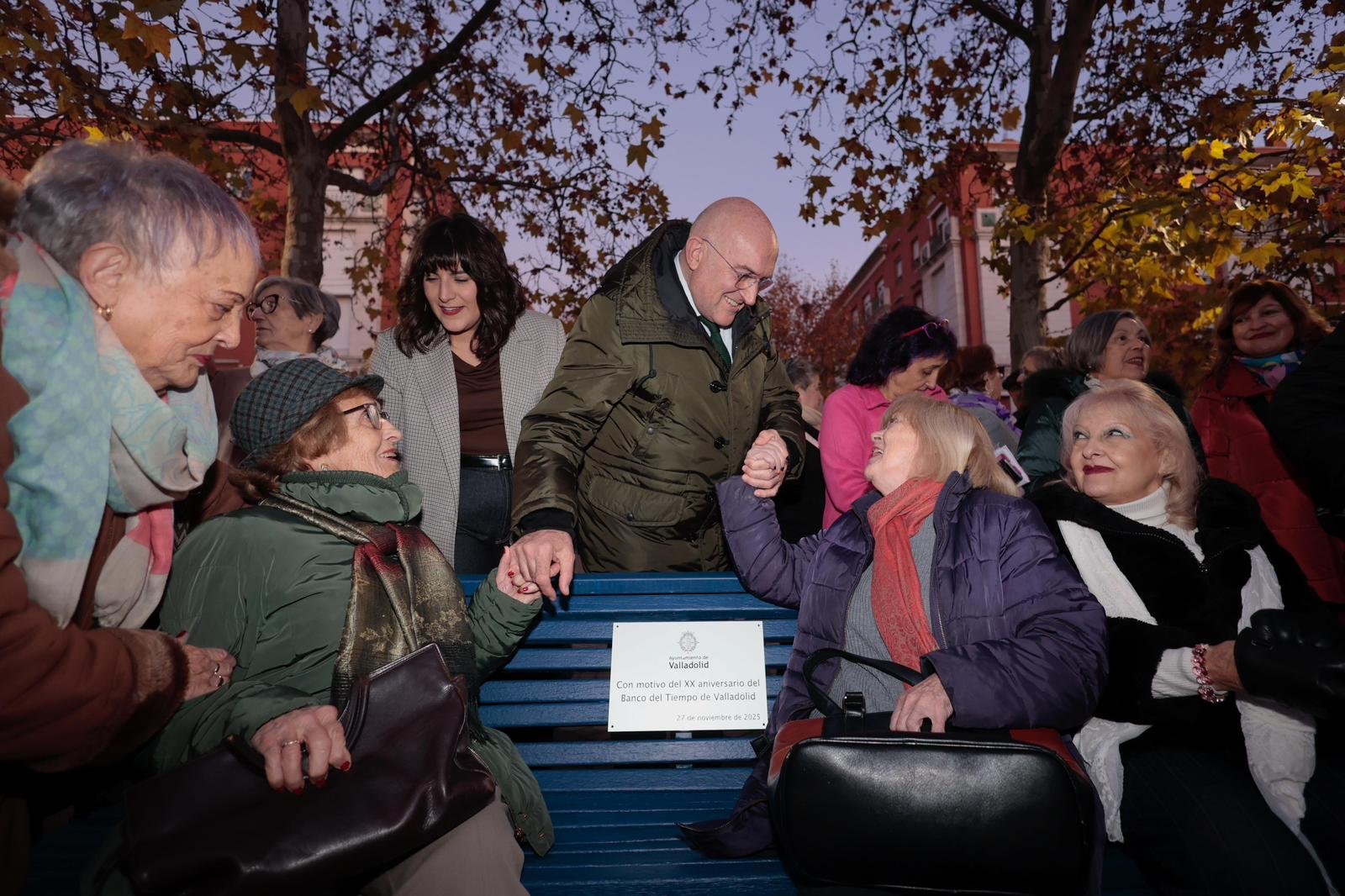 El Ayuntamiento de Valladolid ha conmemorado el vigésimo aniversario del Banco del Tiempo, un programa municipal que fomenta la solidaridad y el intercambio de servicios entre los vecinos. El evento, presidido por el alcalde Jesús Julio Carnero en la Plaza del Cosmos, contó con la presencia de responsables del programa, voluntarios y usuarios. Durante su discurso, el alcalde resaltó el crecimiento del Banco del Tiempo, que ya cuenta con 808 personas inscritas y realiza más de 500 intercambios individuales cada año. Asimismo, destacó el impacto social positivo de este programa municipal en la comunidad. Carnero enfatizó la importancia del voluntariado, señalando que «los voluntarios son el corazón de este proyecto. Gracias a su generosidad, Valladolid es una ciudad más humana, cercana y solidaria. Sin su dedicación, este programa no habría llegado tan lejos». En el marco de la conmemoración, dos voluntarios compartieron sus experiencias y aprendizajes, y se presentó un banco azul con una placa conmemorativa en la Plaza del Cosmos, simbolizando los 20 años de historia del proyecto y el compromiso del Ayuntamiento con la participación ciudadana. Celebración del 20 aniversario del Banco del Tiempo en Valladolid con reconocimiento a voluntarios y participación ciudadana.