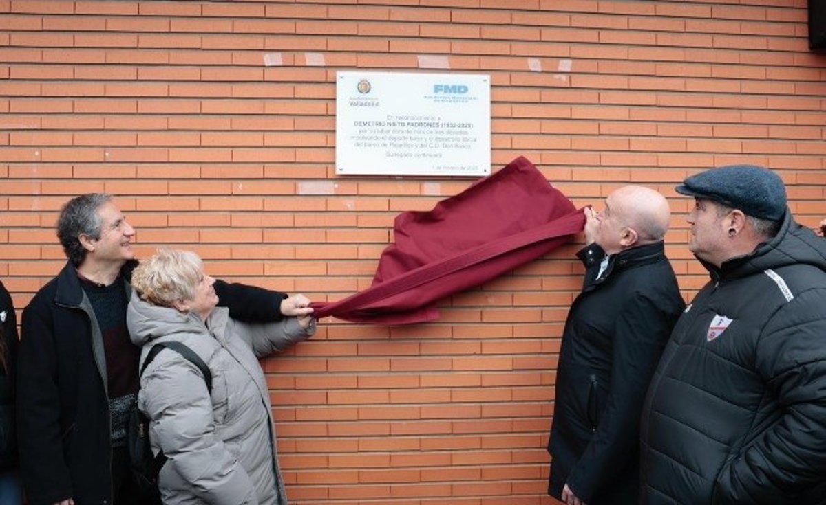 El Ayuntamiento de Valladolid ha rendido homenaje a Demetrio Nieto Padrones, presidente del Club Deportivo Don Bosco desde 1992 hasta su fallecimiento, mediante la colocación de una placa conmemorativa en las instalaciones deportivas de Don Bosco.