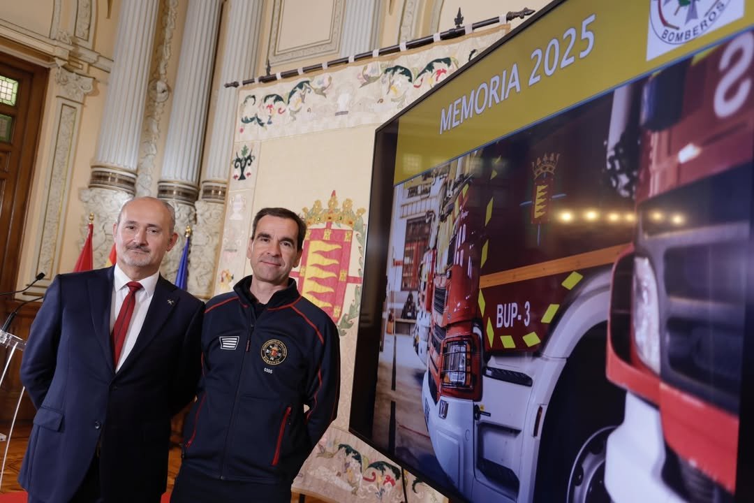 El concejal de Salud Pública y Seguridad Ciudadana, Alberto Cuadrado, y el director del Servicio de Extinción de Incendios, Salvamento y Protección Civil, Javier Reinoso, presentaron la Memoria anual 2025.